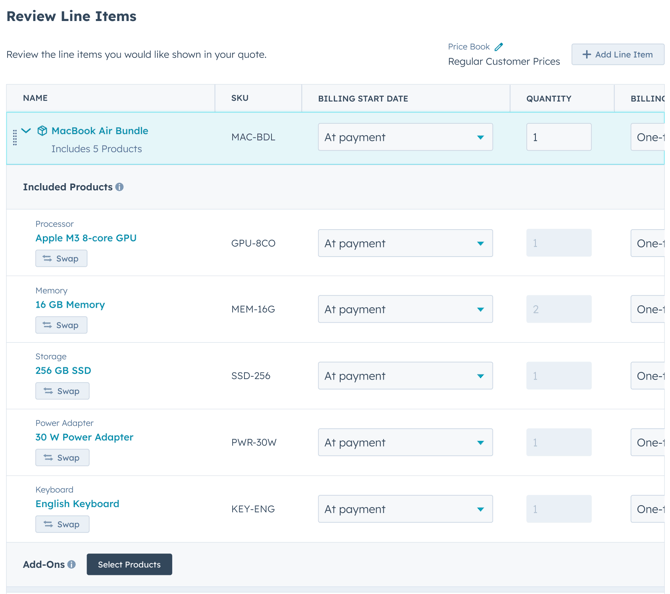 Adding Bundles to Quotes