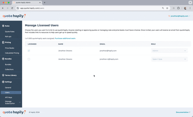 Unless you're on trial, you may only grant as many users access as you've purchased.